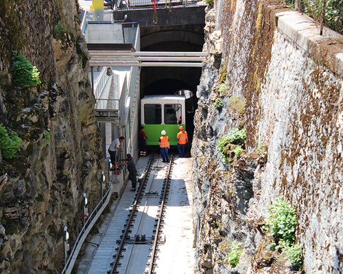 Année de construction : 1890 (à contrepoids d’eau, électrification en 1907, transformation du treuil en 1941, automatisation en 1985 avec nouvelles cabines, réfection complète de la voie et des stations aux normes LHand en 2008 - 2009, rénovation des cabines en 2015)