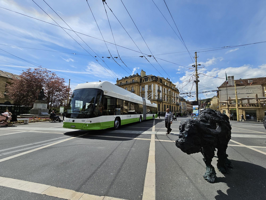 Propulsé par un moteur électrique, le trolleybus a l’avantage d’être silencieux et de ne pas rejeter de CO2 lors de sa circulation et est donc idéal en milieu urbain. La circulation de ce type de véhicule nécessite des lignes de contacts électriques.